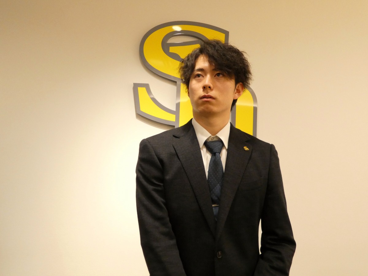 川口冬弥投手が16日、みずほPayPayドーム内の球団事務所を訪れて来季の育成選手としての契約書にサインをしました。
