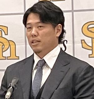 現役ドラフトでロッテからホークスに移籍してきた中村稔弥投手の入団会見が15日、みずほPayPayドーム内のプレスカンファレンスルームで行われました。